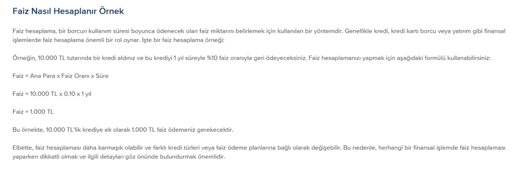 📌 Faiz Hesaplama Formülü